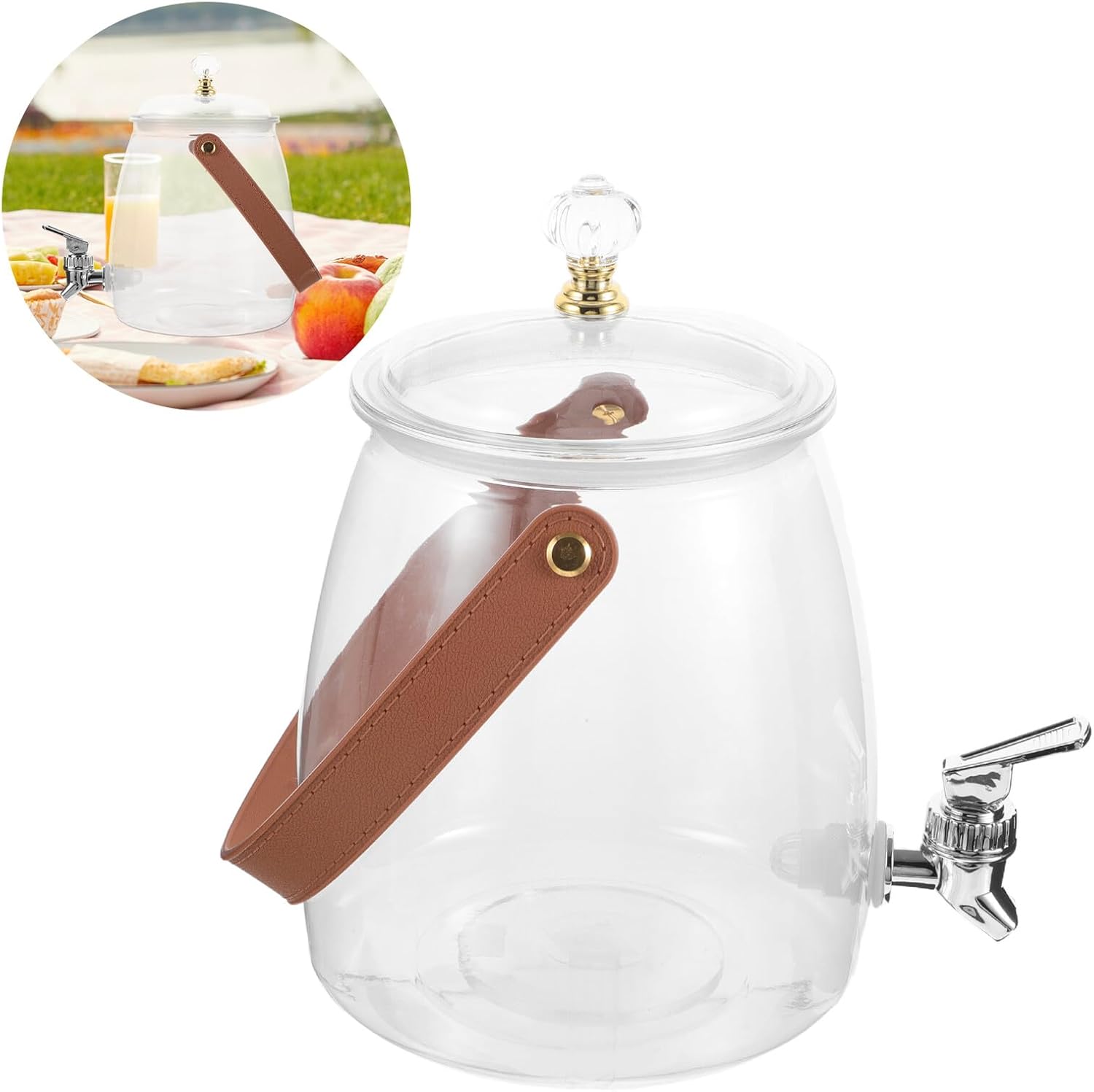 Package Include 1 x drink dispenser with tap Characteristics -Color:Transparent (The lid color is random) -Stylish faucet: the electroplated faucet is not only but also adds a touch of elegance to your drink dispenser, ensuring a smooth and leakfree pouring experience cold drink dispenser -Product Info: Ice bucket tea separator - construction: crafted from plastic materials, this drink dispenser is built to last, providing you with a reliable and practical solution for serving beverages -Stay cool: this drink dispenser is designed to keep your beverages , providing a refreshing experience during hot summer days and family gatherings faucet drink dispenser -Size:32.50X21.00X16.50cm/12.77X8.25X6.48in -Generous capacity: the allows you to serve multiple drinks without the need for frequent refills, making it for parties and family events cold water dispenser -Material:Plastic -Convenient for any occasion: whether it's a family gathering, party, or outdoor event, this drink dispenser is easy to transport and use, making it a versatile choice for any occasion drink bucketGoods Descriptioniced beverage dispensers Enjoy your favorite cold beverages effortlessly.juice container with tap The drink container is designed for convenience and style, with a modern appearance that fits seamlessly into any kitchen or outdoor setting.cold beverage container The integrated faucet makes it easy to pour drinks without spills, making it for parties, picnics, and everyday use