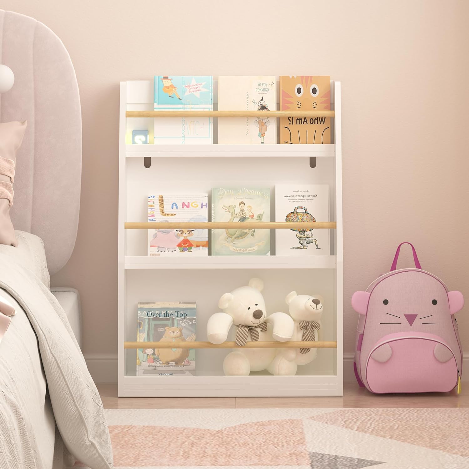 A multifunctional open book storage organizer for kids, this kids bookshelf stores books, toys, and more. Made of high-quality engineered wood, it ensures safety and durability. With an anti-tipping device and wall mounting points, it's stable and secure. Its modern design fits any room and encourages reading. Easy to install, it keeps children's spaces tidy and organized.